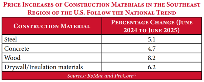 Finally, this table shows the percentage change in the price of construction materials over the past year (from June 2024 to June 2025).